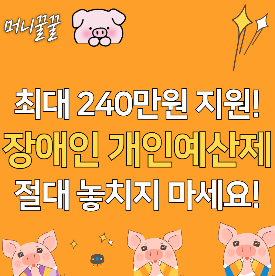 마감까지 단 10일! 나에게 꼭 필요한 서비스를 국가 예산으로 직접 고를 기회, 놓치시겠어요? 서울시 장애인 주목! 2025년 장애인 개인예산제 시범사업 신청이 6월 20일 마감됩니다. 최대 240만원 예산을 받아 나에게 꼭 필요한 서비스를 직접 선택하는 새로운 복지! 신청 자격과 방법을 지금 바로 확인하세요.