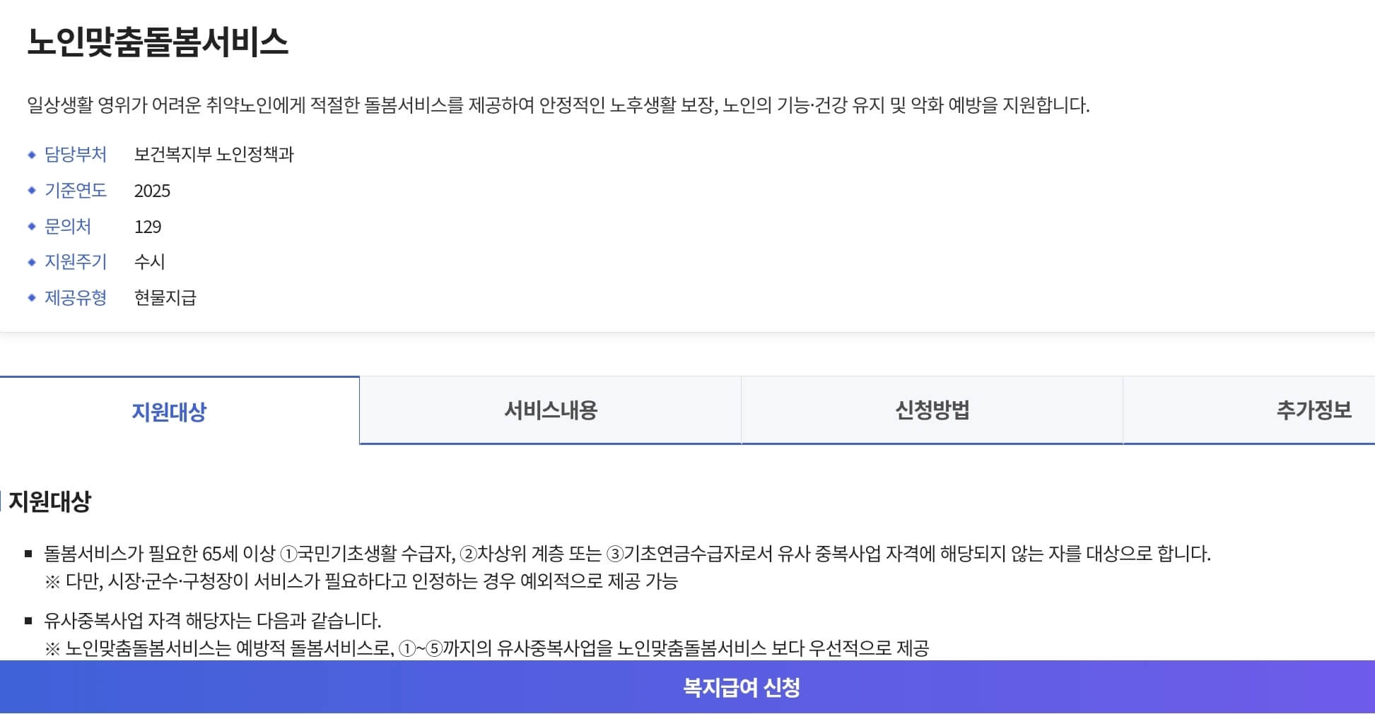 - 선정 및 서비스 이용: 시·군·구의 심의를 거쳐 최종 대상자로 결정되면, 계약 체결 후 서비스가 시작됩니다.