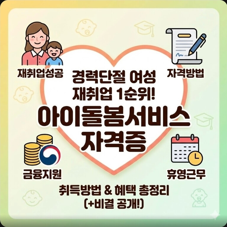 집에서 아이들 키우느라 고생 많으셨죠? 다시 일을 시작하고 싶은데 어디서부터 손을 대야 할지 막막한 그 마음, 저도 정말 잘 알아요. 그런데 요즘 경력단절 여성분들 사이에서 가장 뜨거운 직업이 뭔지 아세요? 바로 아이돌봄서비스 자격증이에요! 2026년부터는 ‘아이돌봄사’라는 멋진 국가자격증으로 바뀐다는 기분 좋은 소식도 있더라고요. 우리 같이 차근차근 준비해서 당당한 전문가가 되어봐요!