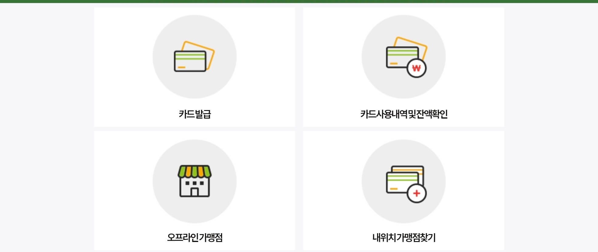 - 상단 메뉴에서 [사용하기] → [오프라인 가맹점] 또는 [온라인 가맹점]을 클릭합니다.