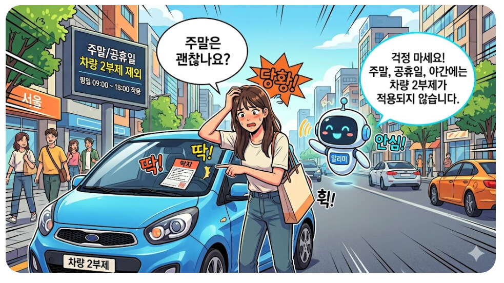 결론부터 말씀드리면, 다행히도 사상 초유의 위기 상황이지만 차량2부제 주말과 국경일 같은 공휴일은 단속하지 않거든요. 휴일만큼은 생업을 위한 이동이나 최소한의 경제 활동을 보장하겠다는 정부의 최후의 배려인 거예요.