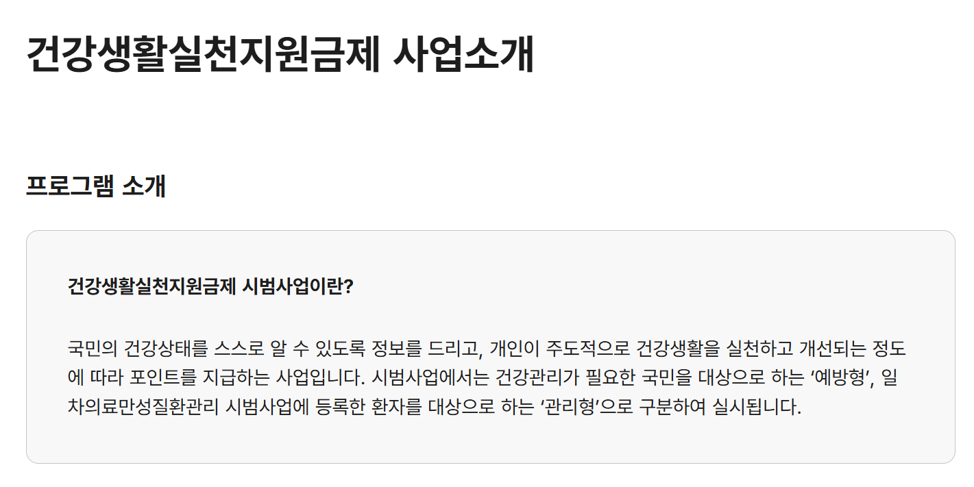 | 관리형 | 케어플랜 수립, 걷기, 자가측정(혈압·혈당), 교육 이수 | 최대 8만 점 (1년간) |
