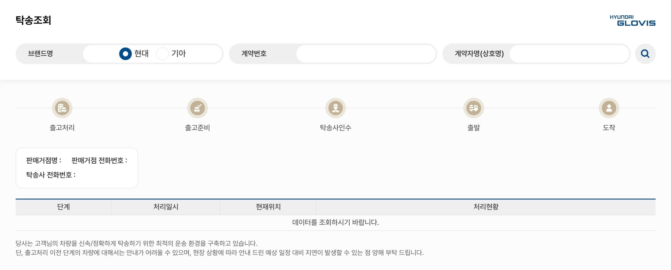 3. 현대글로비스를 통한 현대차 탁송 조회