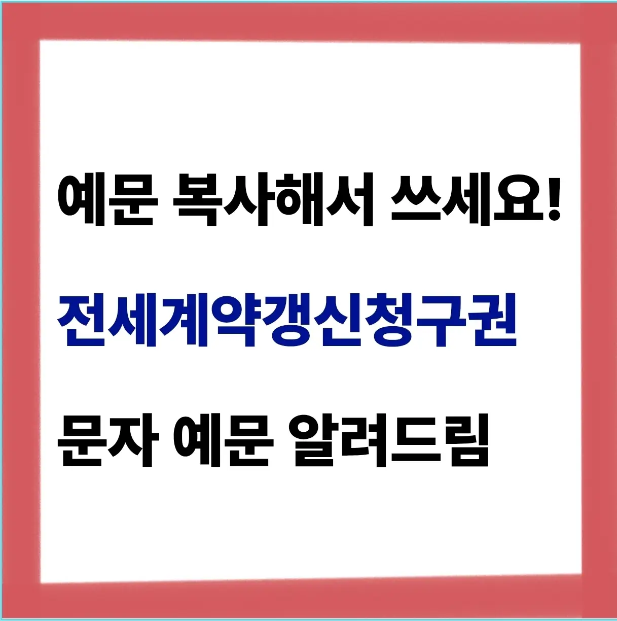 아래는 전세계약갱신청구권 행사 시 바로 사용할 수 있는 문자 예문입니다.