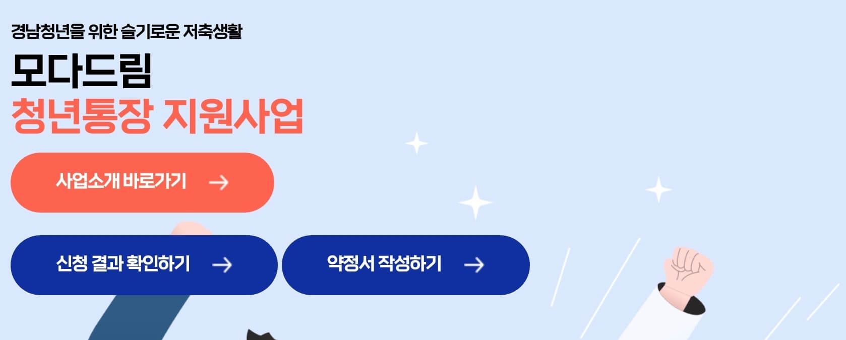 지금까지 경남 청년들을 위한 최고의 자산 형성 기회, 모다드림 청년통장의 조건과 신청 방법에 대해 알아보았습니다. 2년 후 1천만 원에 가까운 목돈을 손에 쥘 수 있는 정말 좋은 제도이죠.