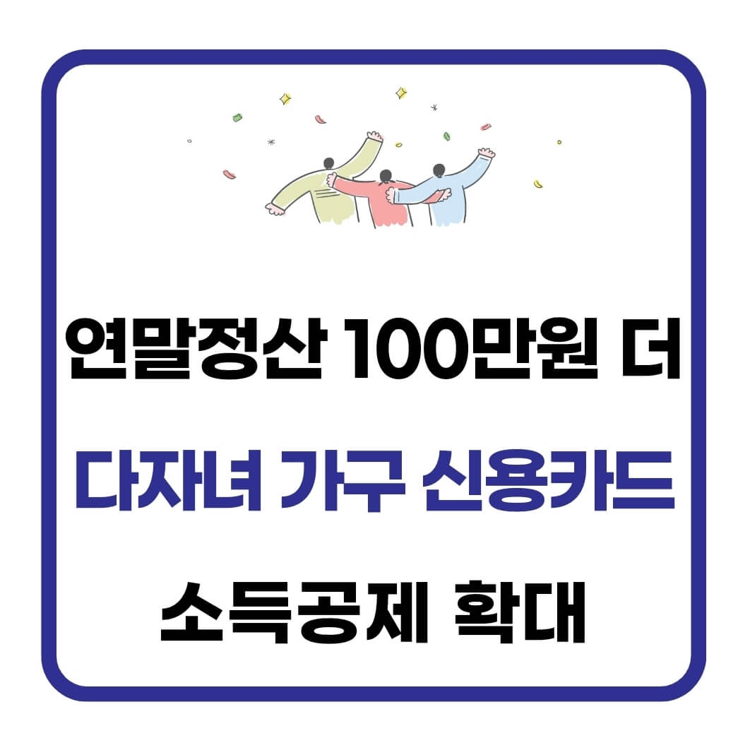내년 연말정산이 기대되는 소식! 다자녀 가구 신용카드 소득공제 한도가 최대 100만원까지 늘어납니다. 2026년부터 확대되는 혜택의 모든 것을 제가 직접 알아본 내용으로 알려드릴게요.