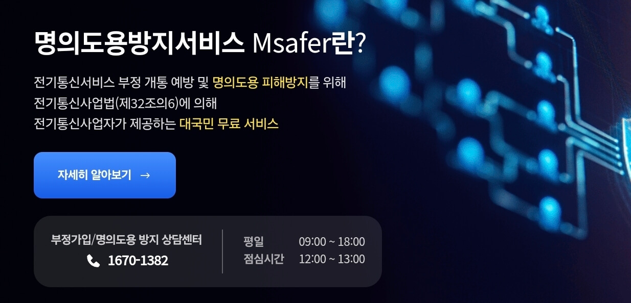 많은 분들이 이 서비스를 ‘엠세이퍼(Msafer)’와 헷갈려 하시는데, ‘엠세이퍼’의 핵심 기능을 PASS 앱에서 더 간편하게 신청하고 관리할 수 있도록 만든 것입니다.